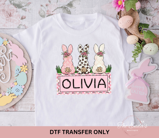 Personalized Pink Bunny Trio DTF Transfer