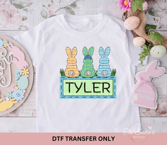 Personalized Blue/Green Bunny Trio DTF Transfer